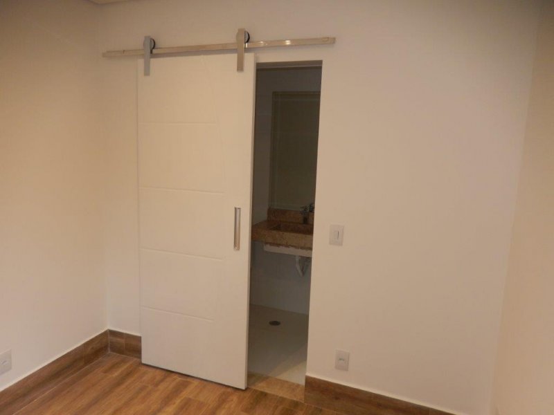 Em todos os quartos com janelas e porta balcão integrada de alumínio branco.