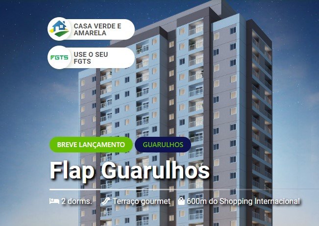 Apartamentos Minha Casa Minha Vida de 2 quartos ao lado do Internacional Shopping Guarulhos! Plantas com 2 quartos, 43m², Terraço e vaga de garagem, em um condomínio com lazer de clube para toda a família. Conheça! Comentário do Especialista sobre o Flap Guarulhos.