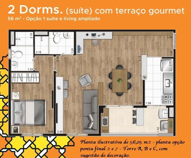 - Área Privativa: 56,05 m²