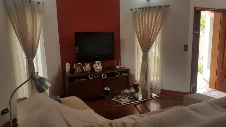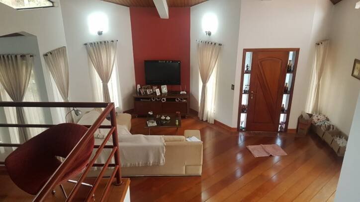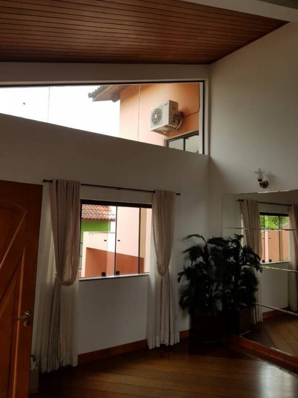 Casa condomínio fechado, 4 dormitórios (3 suítes com ar condicionado split quente e frio e água quente por aquecedor solar nas suítes), 1 suíte para visitas (todos com armários embutidos), sala três ambientes com lareira, sala de estar, sala de jantar, cozinha ( com armários embutidos) , varanda nos fundos, salão de festas/TV com banheiro, piscina panorâmica, churrasqueira, garagem para 4 carros ou mais, depósito, mini-gramado e pomar com árvores frutíferas.