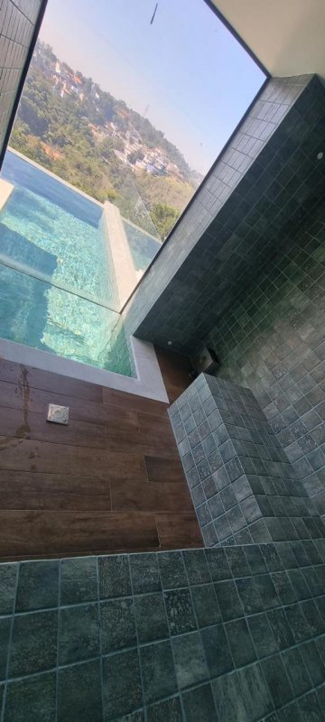 Piscina com borda infinita e aquecida