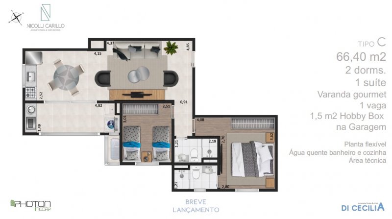 | Apartamento | R$ 669.623,00 | 66,40 m² | 66,40 m² | 2 | 1 | 2 | 1 |