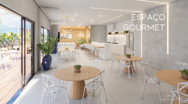 - Living ampliado e varanda gourmet;