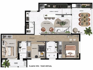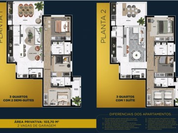 Com 3 quartos, sendo 1 suíte e 2 demi-suítes e 2 vagas de estacionamento, o Aurus traz lazer diferenciado com quadra de beach tennis e piscina externa climatizada, além de outros itens de lazer.
