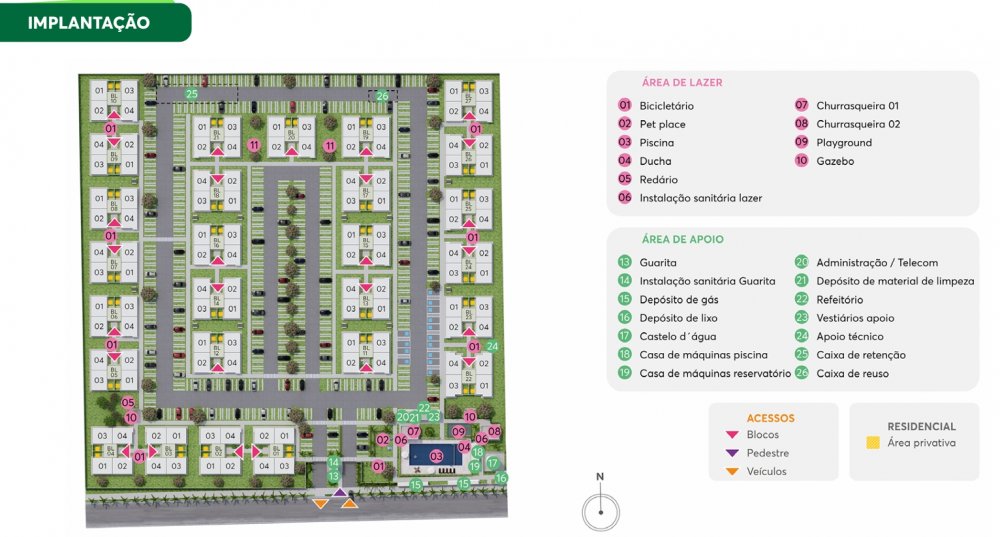 Unidades: 436 unidades em 27 blocos sendo 1 bloco com 5 pavimentos e 26 blocos com 4 pavimentos