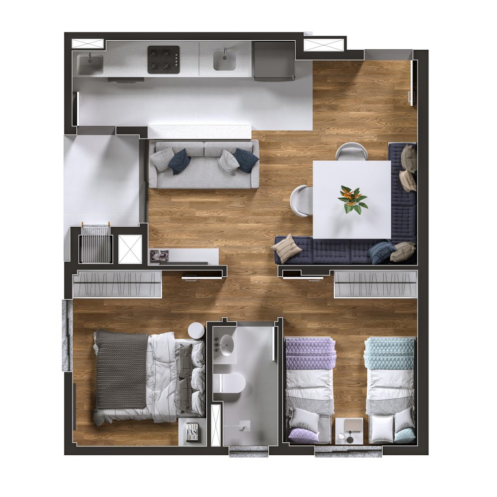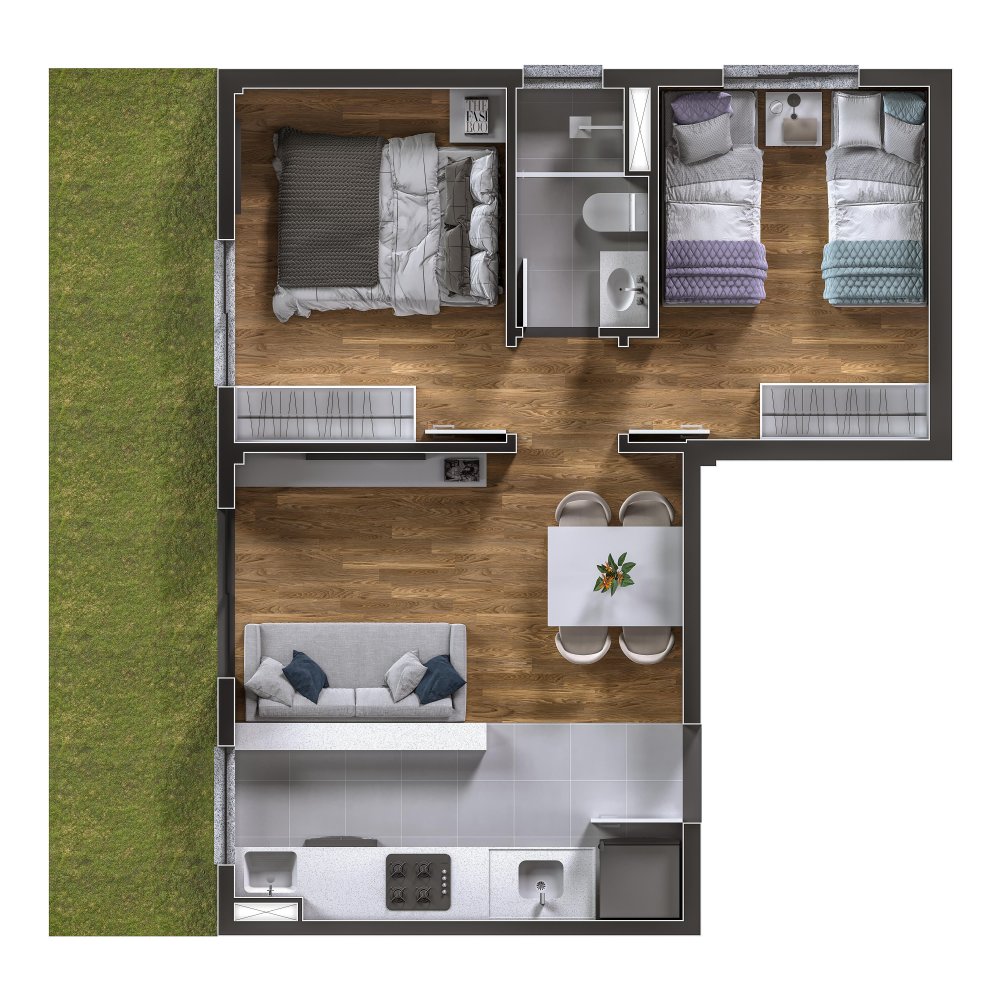 Apartamento 2 Quartos de 40,57m2 a 48,44m2