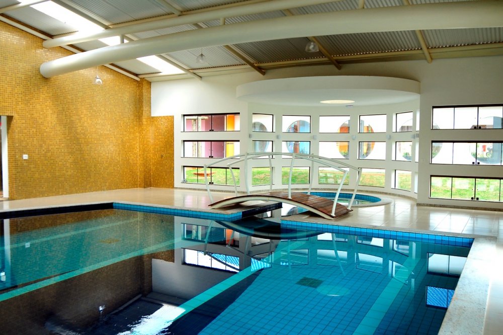 Piscina com cascata para adultos e crianças